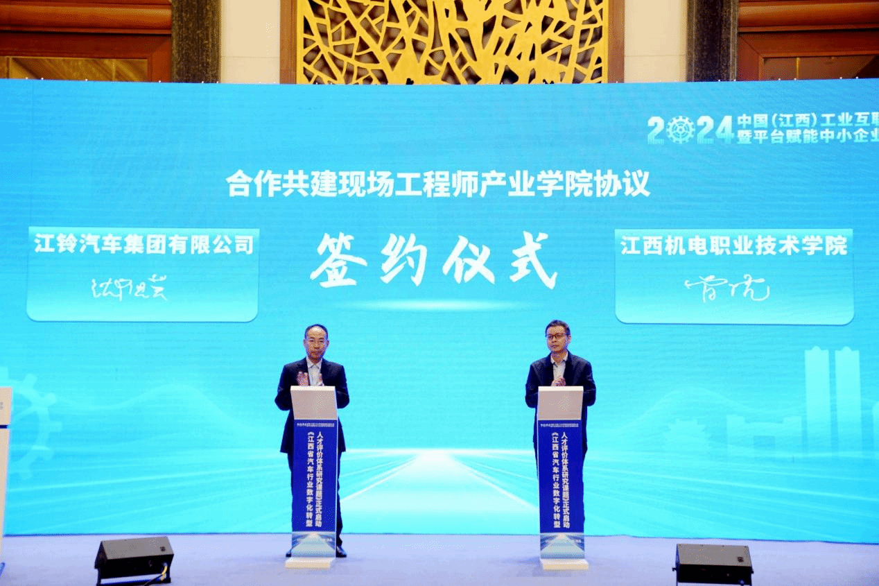 刘明亮、花严红、李小军共同启动《江西省汽车行业数字化转型人才评价体系研究课题》,学校与江铃汽车集团有限公司签署《合作共建现场工程师产业学院协议》,学校“双师型”名师工作室负责人殷欢老师以学校机电一体化技术专业群为例,分享了制造业转型升级背景下人才培养模式改革的实践经验。